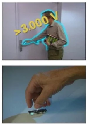 9.4.1.如何消除静电对电子无线构件的导致集成电路元器件的线路减少,耐压下降,线路面积减小,使得器件耐静电打击能 力的减弱,静电电场(Static Electric Filed)和静电电流(Electrostatic
