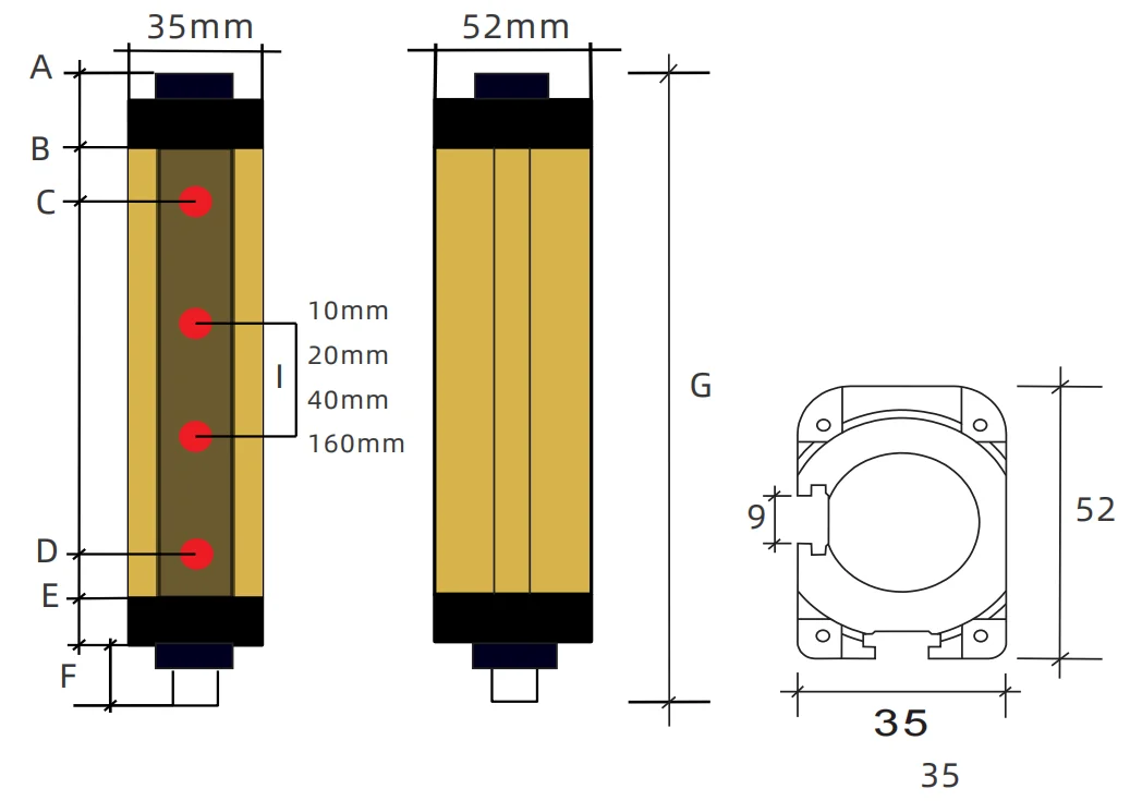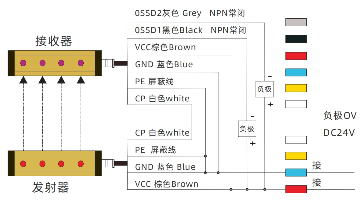 检测体例 Detection way | 型號Model | 节制输出 Control output | 检测间隔 Detection distance | 光轴距 Optic axis distance | 光轴数 Optic axis number | 检测幅宽 Detection width | *小可检出物体 Mndetectable object |