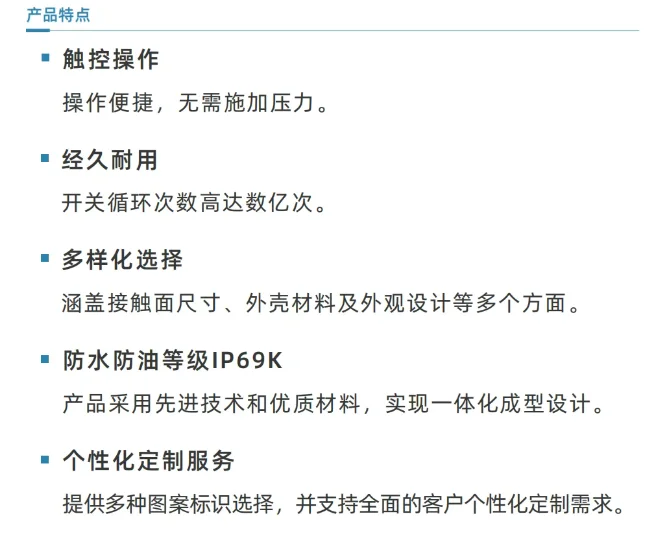 口(kou)味果ꦆ汁(zhi)(zhi)甜品(pin)与社(she)区整形器(qi)(qi)械(xie)保(bao)健(jian)监(jian)督(du)(du)业(ye)内对环保(bao)监(jian)督(du)(du)监(jian)督(du)(du)监(jian)督(du)(du)恳求(qiu)以(yi)及严于,该(gai)用高环保(bao)监(jian)督(du)(du)监(jian)督(du)(du)监(jian)督(du)(du)正规的接触转(zhuan)换开(kai)关按(an)(an)钮应运俱(ju)来。在(zai)口(kou)味果汁(zhi)(zhi)甜品(pin)主(zhu)产(chan)线,它(ta)不(bu)怕污渍(zi)、水痕(hen),于干(gan)干(gan)净(jing)净(jing),加强组织领导主(zhu)产(chan)状况(kuang)稳定(ding)环保(bao)监(jian)督(du)(du)监(jian)督(du)(du)监(jian)督(du)(du);在(zai)社(she)区整形器(qi)(qi)械(xie)业(ye)内,不(bu)来是(shi)病(bing)院门已经打响(xiang),仍(reng)是(shi)社(she)区整形器(qi)(qi)械(xie)极(ji)品(p🔜in)装(zhuang)备使用,这类接触转(zhuan)换开(kai)关按(an)(an)钮都能有效降低细菌(jun)传布(bu)不(bu)安全,为医患(huan)沟(gou)通建造稳定(ding)通讯状况(kuang)。